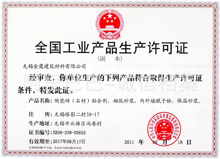 公司自成立以來,遵循以質量求生存,以信譽謀發展的理念,服務于國內外廣大建筑行業,裝修行業,全力為每一位客戶提供 *優質的產品和 *滿意的服務。公司多年來一直與眾多科研機構保持著密切的合作關系,在2010年年底與清華大學土木工程學院成立了“干粉建材技術研發平臺”,并吸收歐美技術經驗,擁有強大的技術支持后盾。成功開發出五大系列、三十多個品牌。即混凝土外加劑系列,粘合劑系列,內外墻膩子粉系列,節能保溫系列,防水材料系列。并確保產品質量 “環保節能”,符合標準。“宇宙金鷹牌”產品成功遍銷長三角地區及全國各地和東南亞(柬埔寨,越南,馬來西亞,肯尼亞等),尤其在江、浙、滬許多大工程中獲得了成功的應用和推廣。